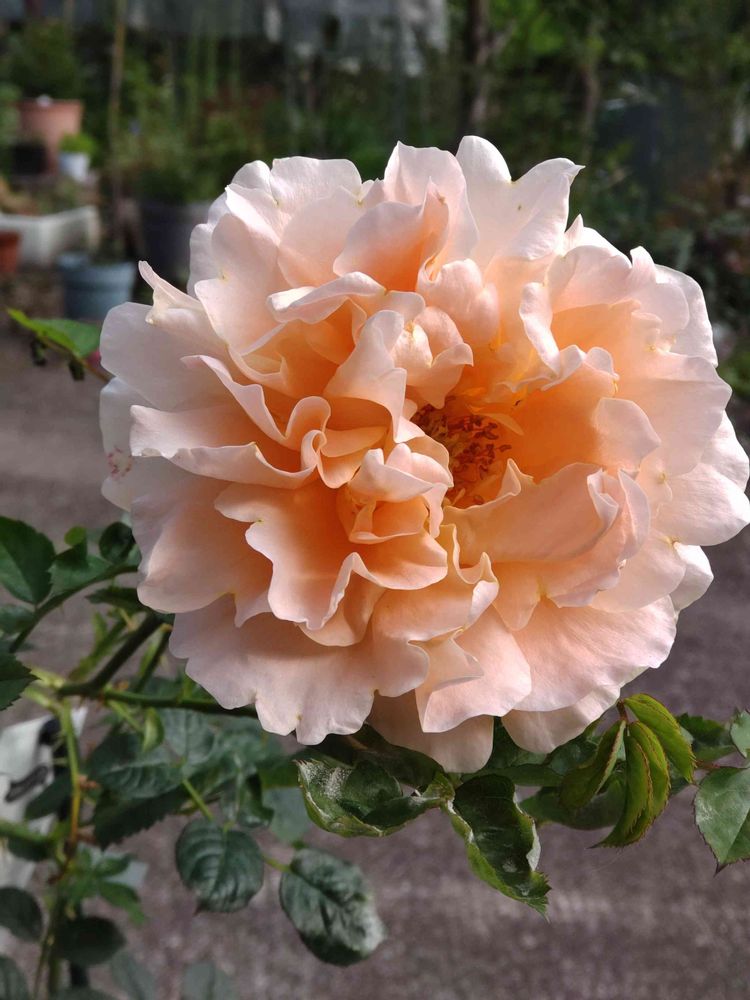 波状弁ロゼット咲きのアプリコットイエローがとても素敵な大輪つるバラです✨✨