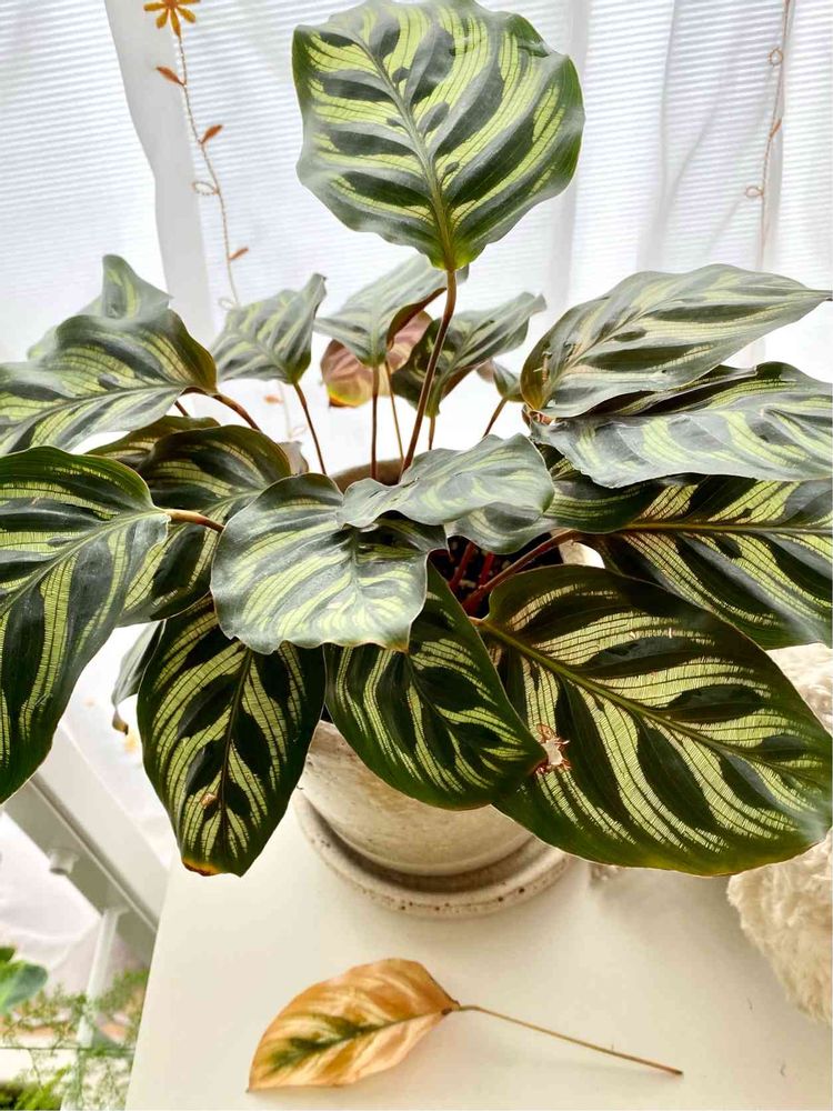 手前は枯れた葉をカットしたものですが、枯れてもカラテアという主張が強いです😆