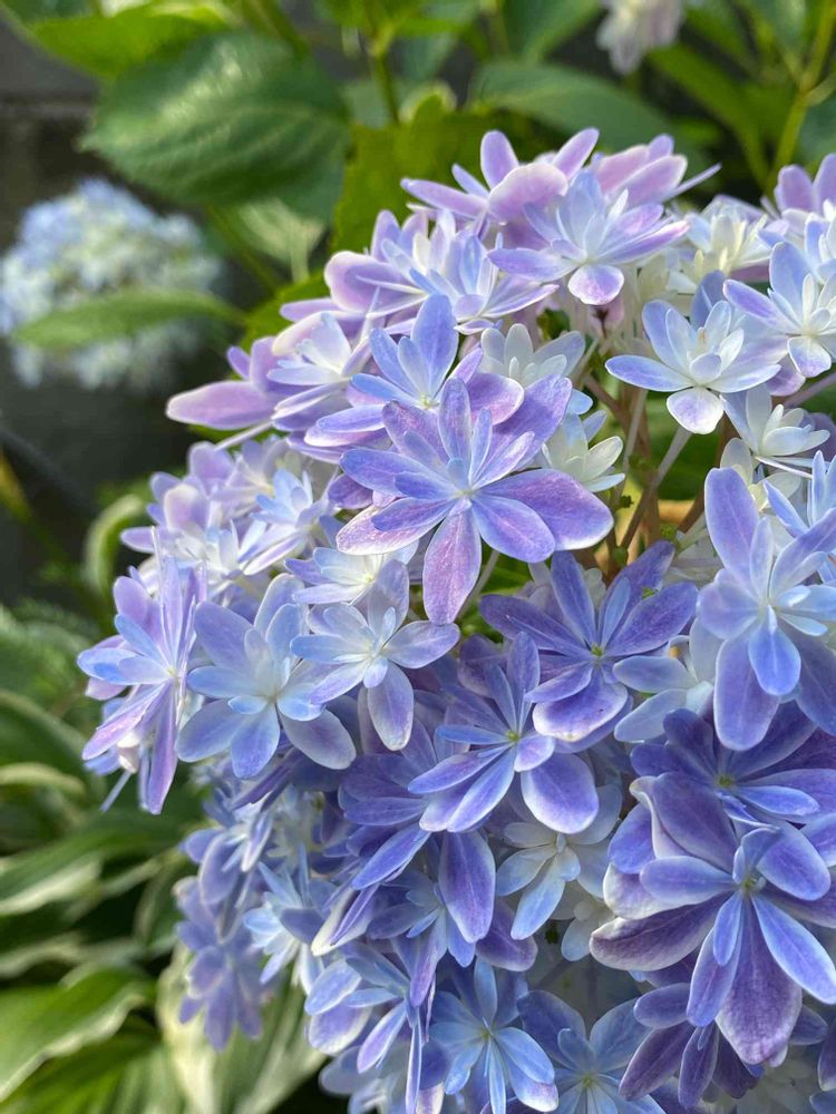 万華鏡、咲きはじめは薄〜い水色🩵そこからだんだん濃いブルーになっていきます。 落ち着いたブルー💙もいいですよね。 地植えで4年目。 だいぶ大きな株になりましたよ。 今年は花数も多くて嬉しい限りです🤗
