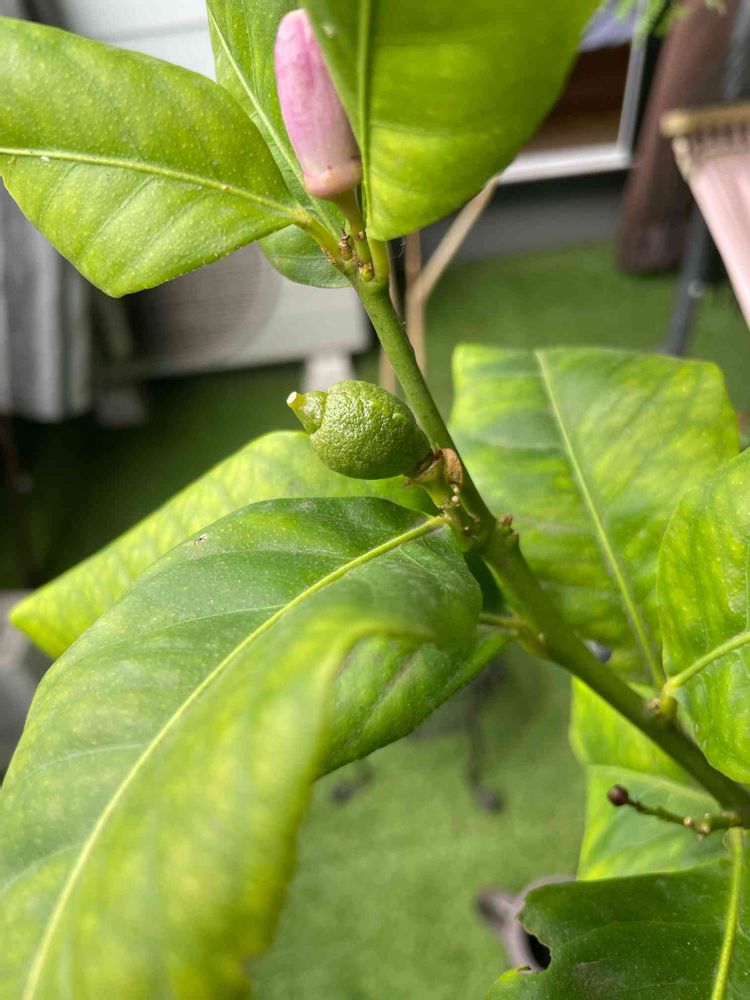 実の表面がガサガサしてきて、レモンぽくなってきた🍋