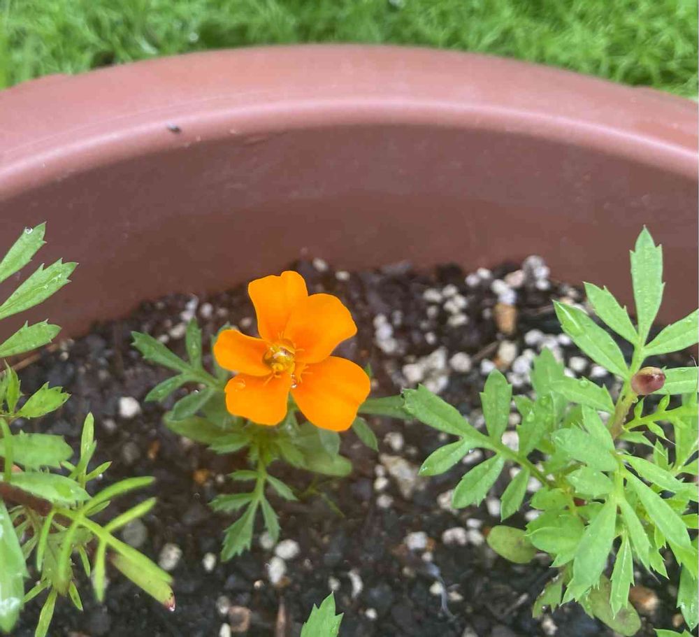 今朝、フレンチマリーゴールドの花が咲きました🌸