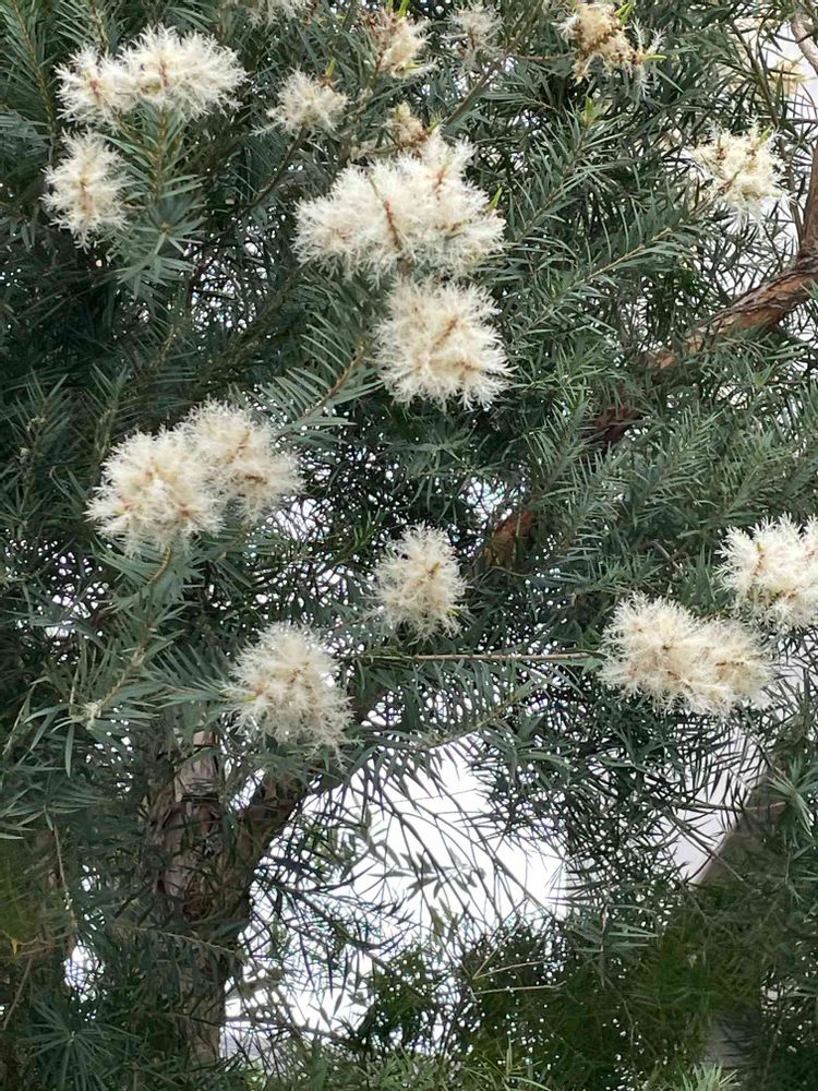 赤いブラシノキは良く見かけますが白いお花は珍しいですね🌼