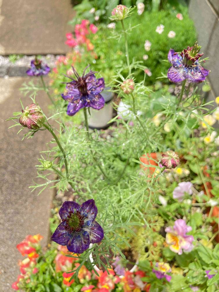 さん ニゲラはこぼれ種からも咲かせられるそうですね。ミッドナイトはとても深い色合いです。
