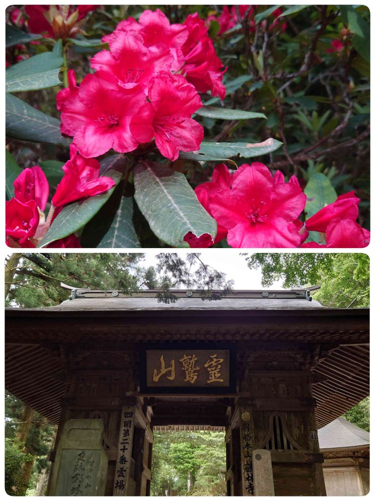 こんばんは、20番札所鶴林寺に、ビビッドなシャクナゲが咲いていました🎵