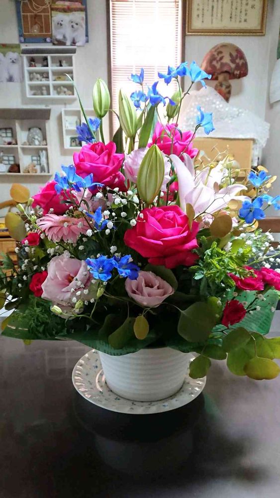 可愛いお花がたくさん入ってました(ˊᗜˋ*)。.*・🌹💙🌺🌿