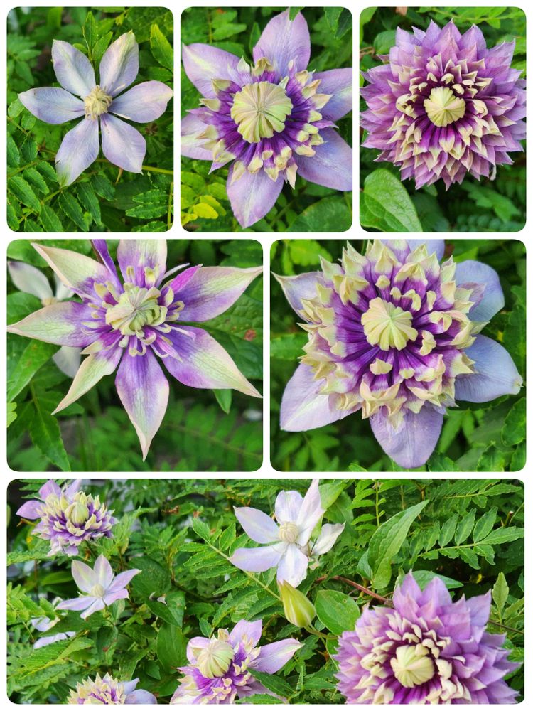 花壇で1株から色々な顔の花をつけているテッセンに逢いました。