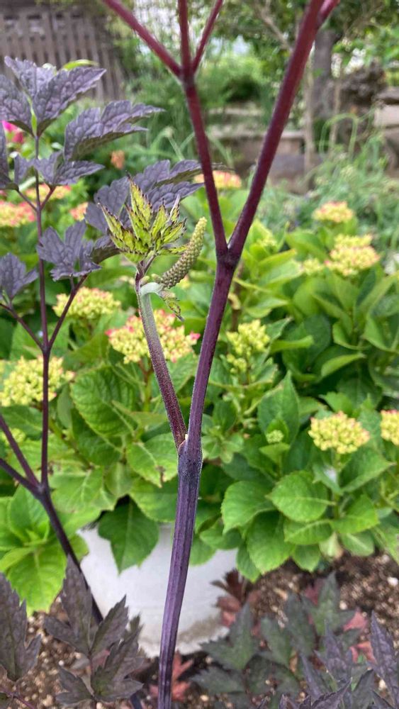 銅葉のシミシフーガに白い花芽が見えてきましたー!