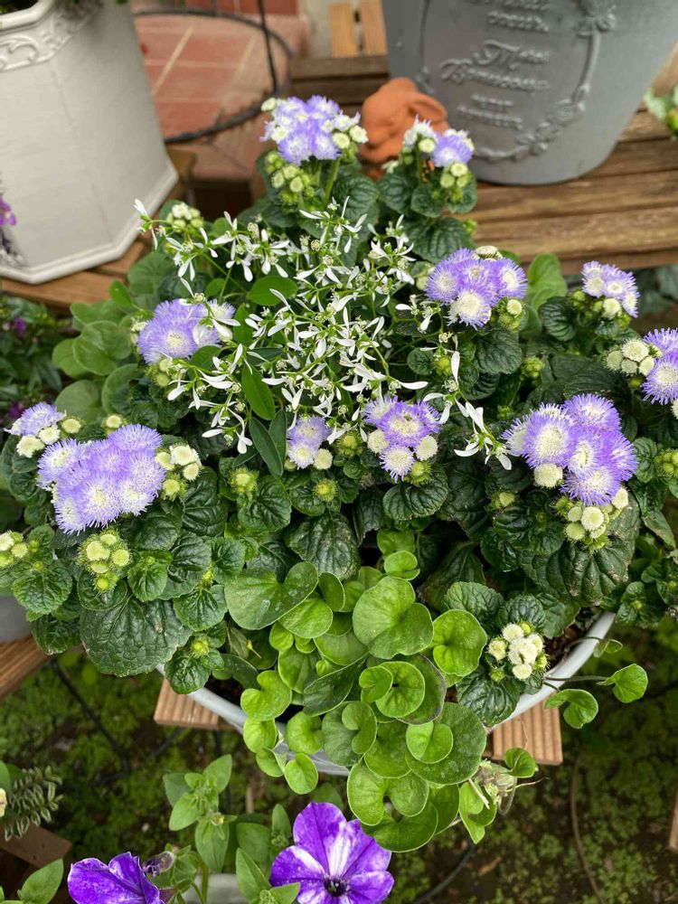 アゲラタムの『バモス!』をお迎えしました🤗💜夏の寄せ植えとしてみました🤭💜🪴✨