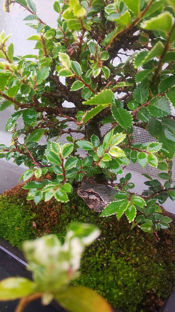 今朝もいて、先ほど仕事から帰ってきて見たらまだいました🐸