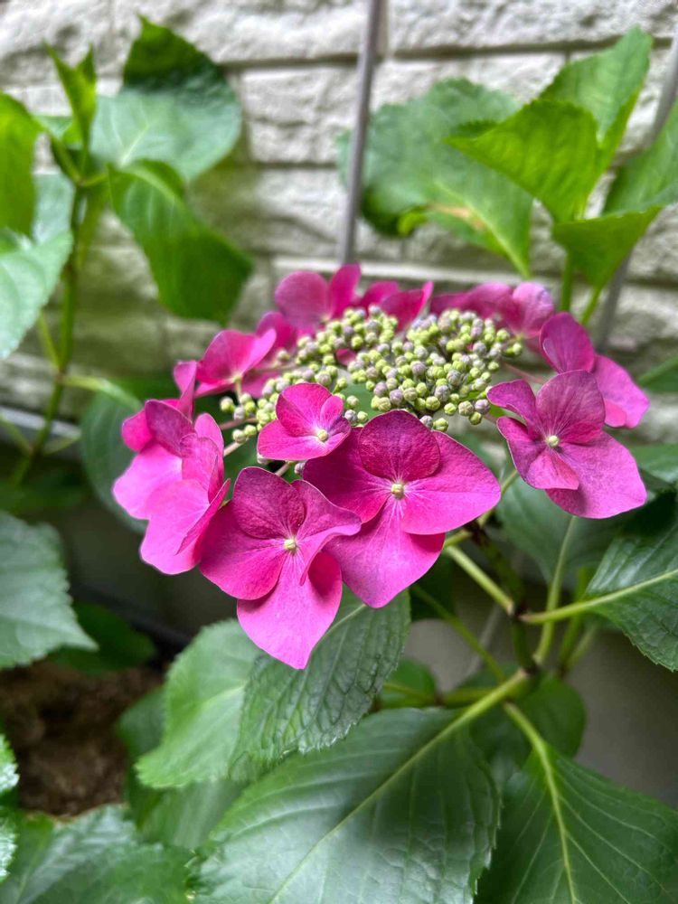 挿し穂から初めて今年咲いたアジサイは明るいカシス色のガクアジサイ 🩷