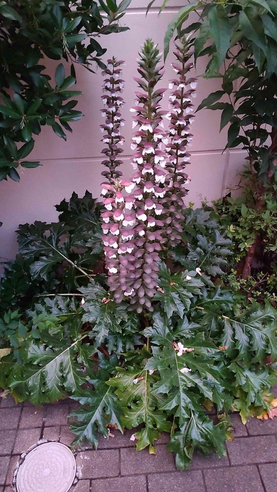 駅前のスペースに、アカンサスモリスと思われる立派な花が咲いていました。