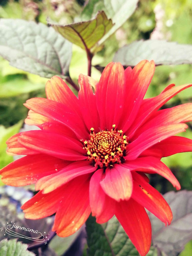 赤いヒマワリ明るくて素敵なお花ですね❣️