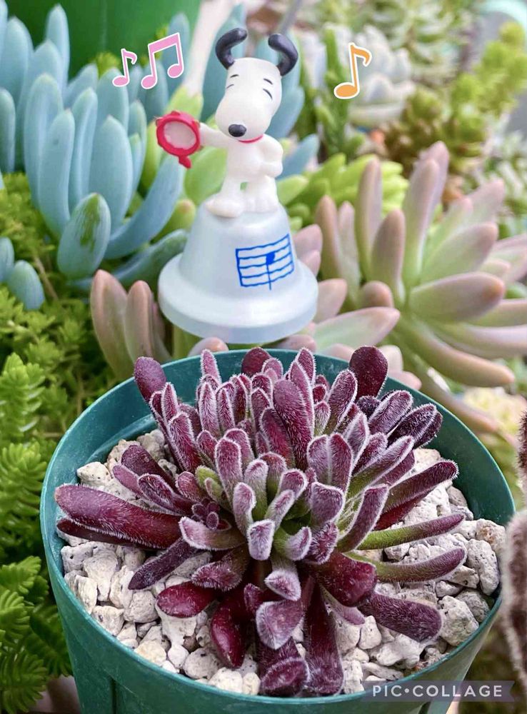 新しい多肉ちゃんにタンバリン🎼で歓迎ムードのスヌーピーさん🎶💕