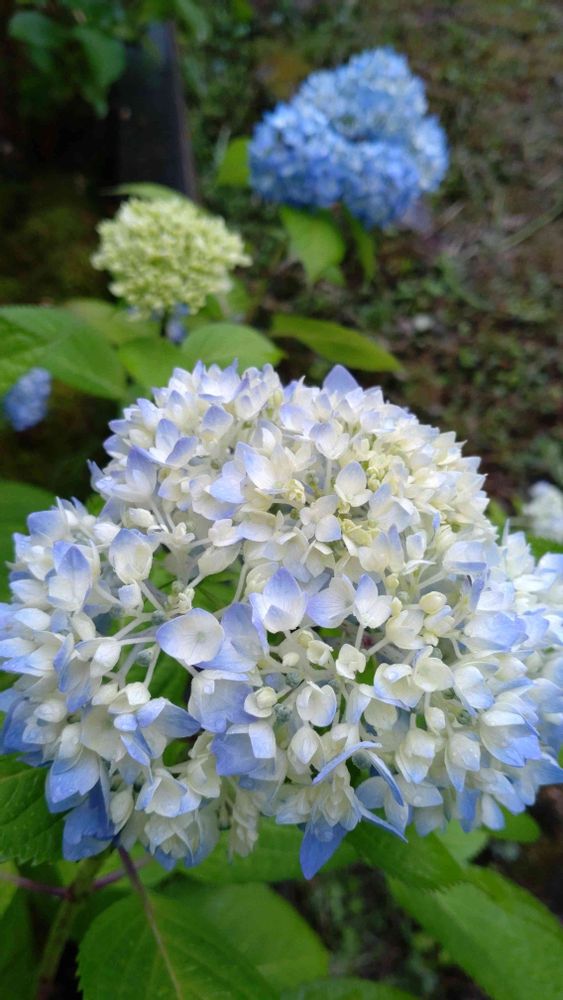 我が家の裏庭に咲き始めた紫陽花💙🩵🤍