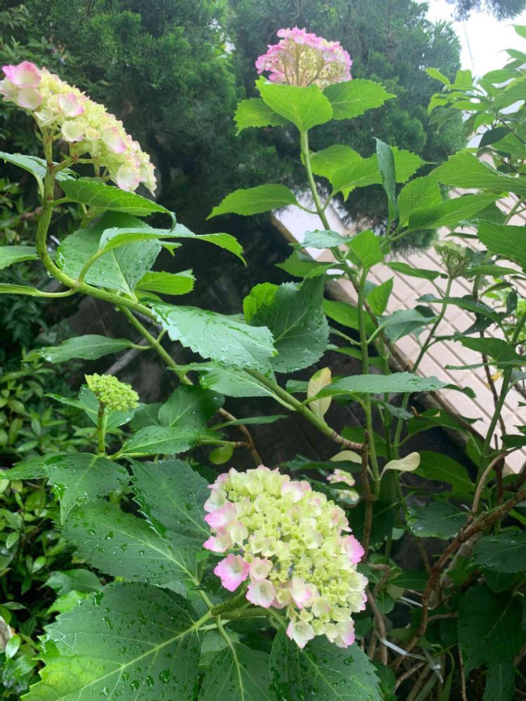 小さな庭,額紫陽花(ガクアジサイ),ピンクと白の投稿画像