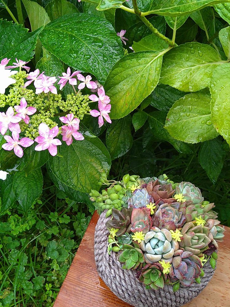 多肉植物,多肉寄せ植え,紫陽花 アジサイ あじさいの投稿画像