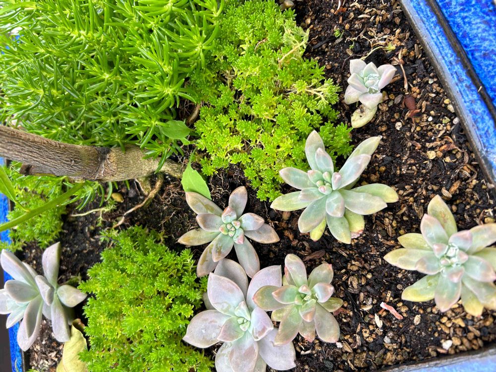 福岡の妹の家にあった徒長しまくりの多肉ちゃんを、カットして空いてるところに植えてあげました😆この子達のお名前わかりますか?