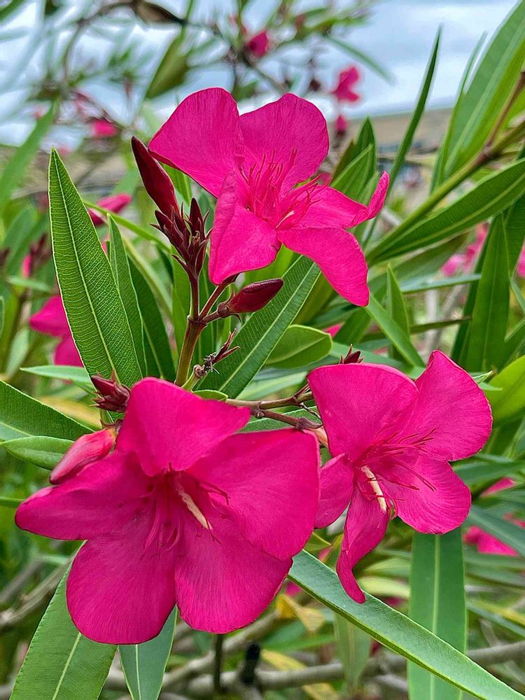 この綺麗な花を見ていると、オルアンドリンという強い有毒成分が花から根まで全体に含まれているなんて、とても思えないです!