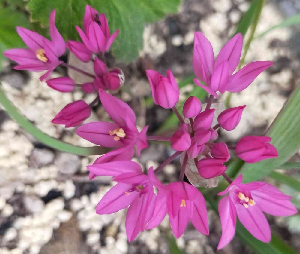 アリウム オレオフィラム?と思われる🧐渋めピンクの背のやたら低いアリウムが咲きました〜😊