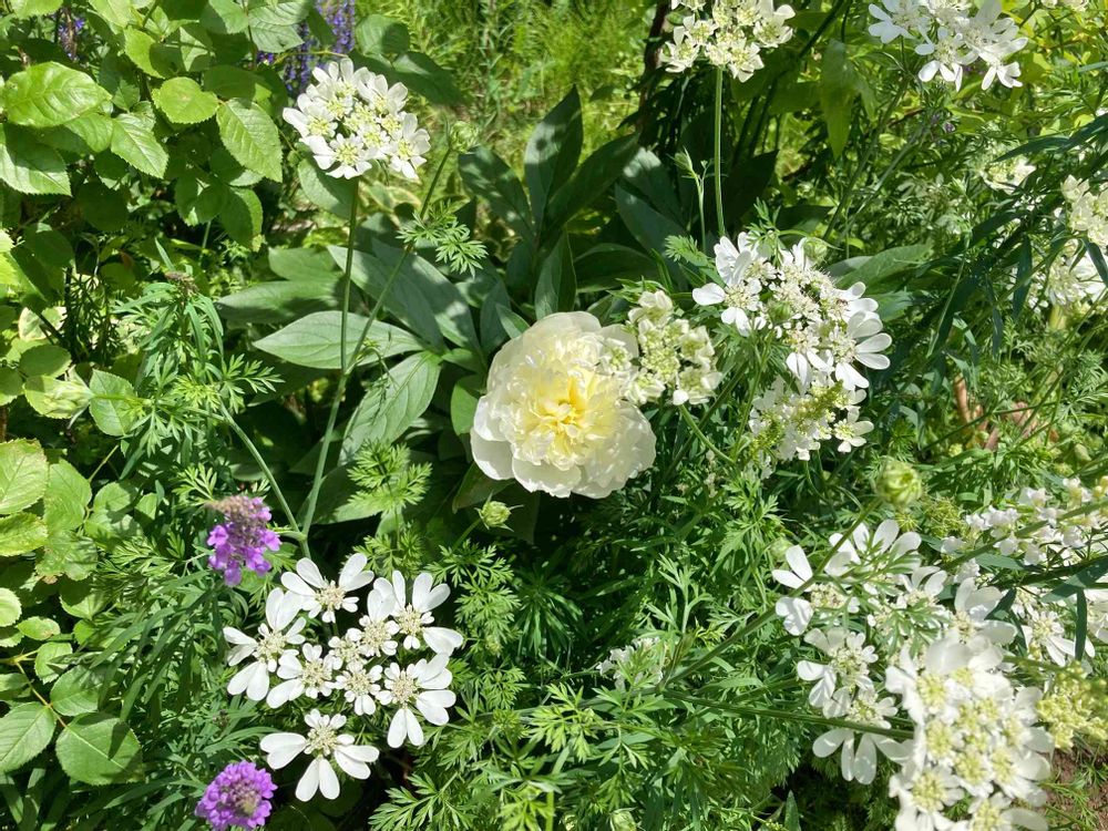 芍薬オルレアたちに囲まれて淡い色で可愛く咲いてますね😍💕