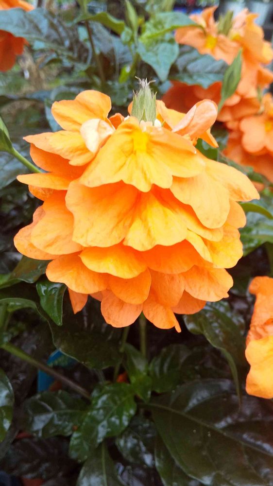 夕暮れ時ホームセンターにて、オレンジ色🧡の「クロサンドラ スーパーキャンドル」をパチリ!📸🏵️🌿😊😄🤗🌆