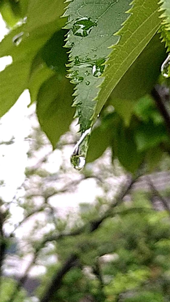 桜の葉の雨の雫を大きく良い感じに撮りましたねぇ✨