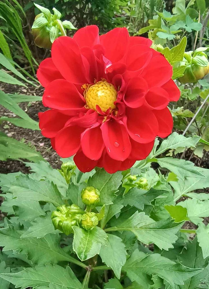 赤いミニダリアの蕾が開きました❣️