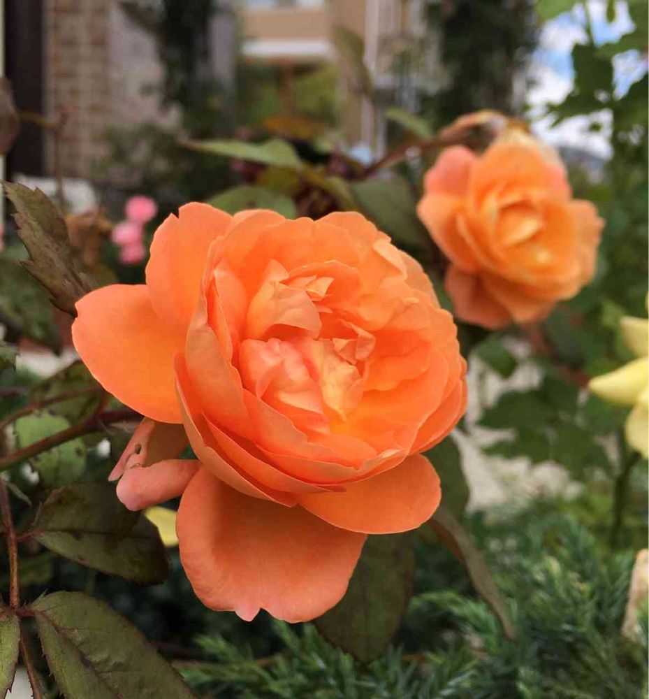 オレンジ色のバラ素敵だなって、昨秋にお庭に仲間入り🌹