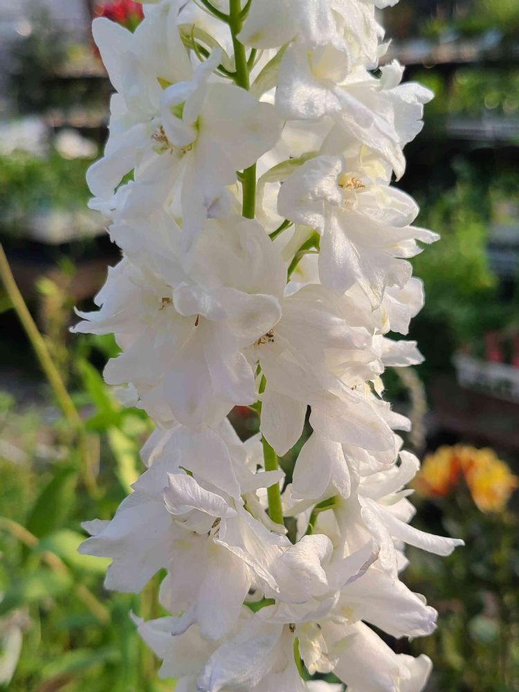 こんにちは😃、真っ白のデルフィニウムもあるのですね😍
