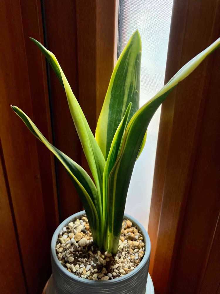 陽の光が全く当たらない店内で、葉がビローンとほぼ真横に開き自立出来ない状態で売られていたサンセベリアを救出して、4ヶ月。