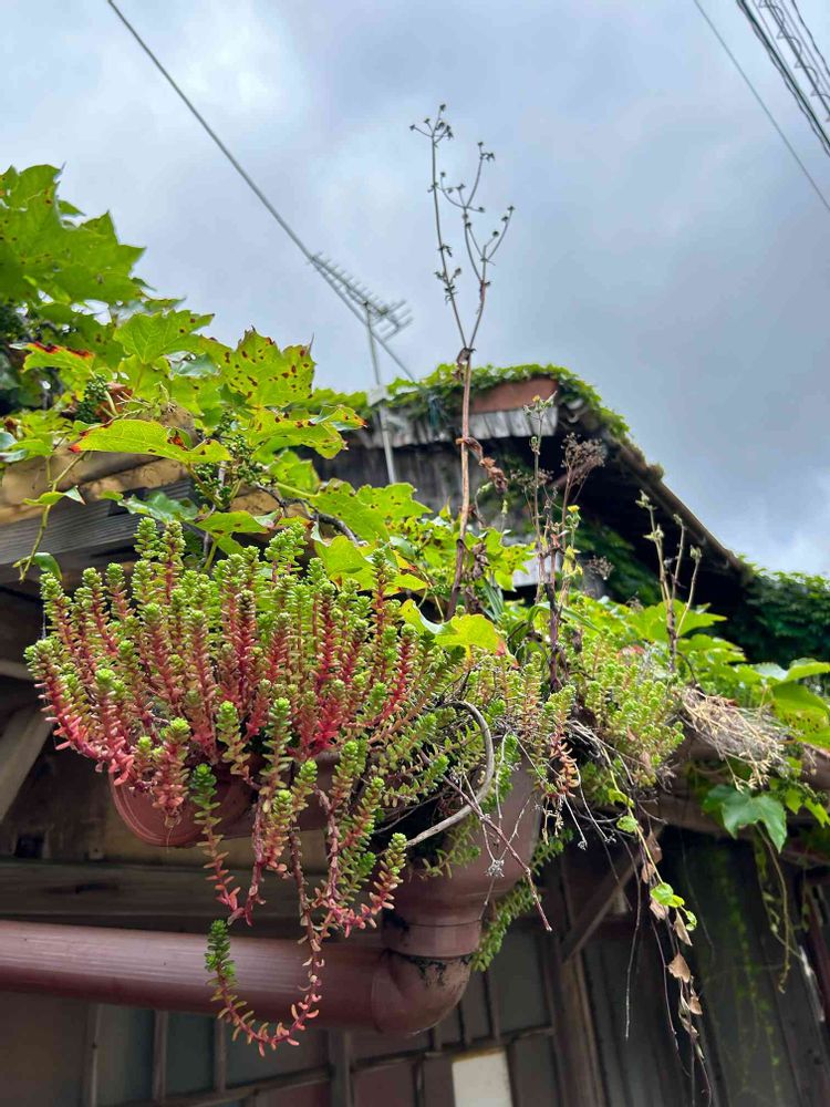 廃屋と化した家の軒先の雨伝いの所に、雑草がいっぱい。。。