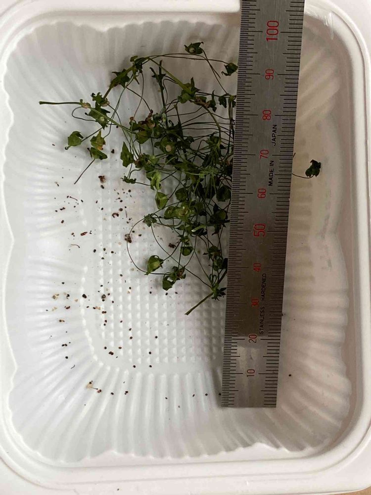 まだ緑だから放置してたけど、種が落ちた後みたいなガクがあった。切って乾かしてたらポロポロ落ちてる。種か土埃か分からんほど細かい。