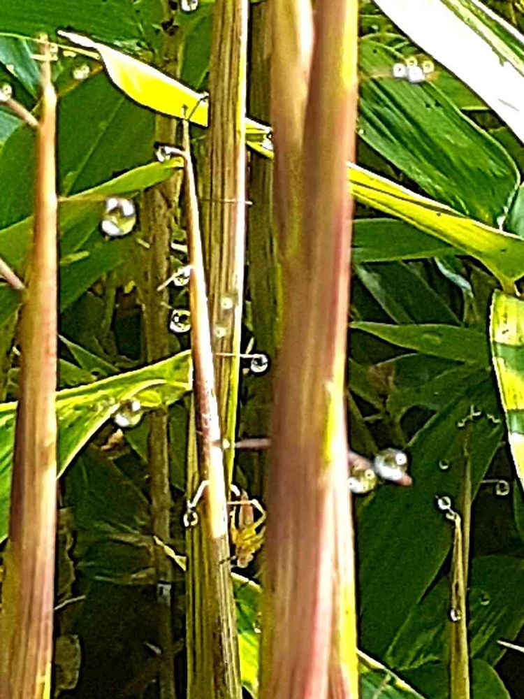 考古園前の笹に付いた雫💧メッチャ⸌⍤⃝⸍