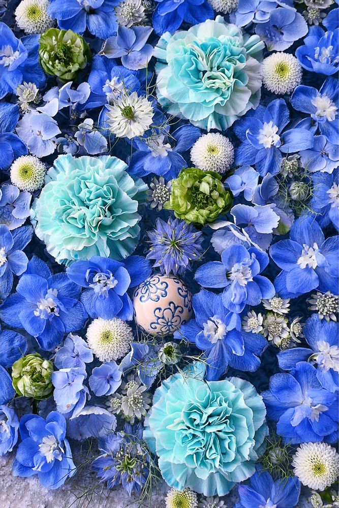 台風一過の青空を思わせる、ブルーの花手水でお祝い申し上げます😊💙