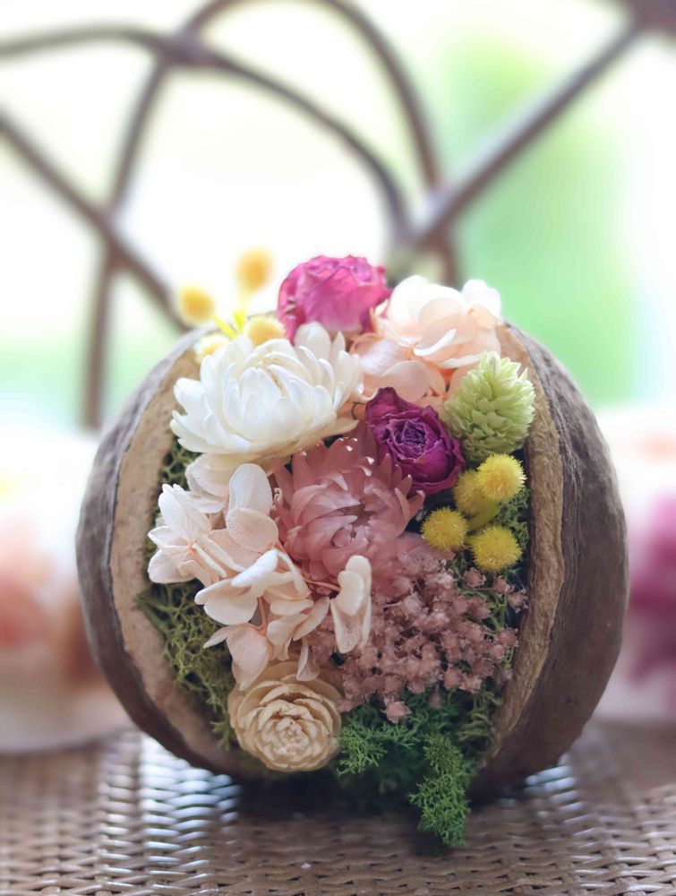 中に ドライフラワーとプリザードフラワーを入れて、アレンジテントしてみました(^^)/