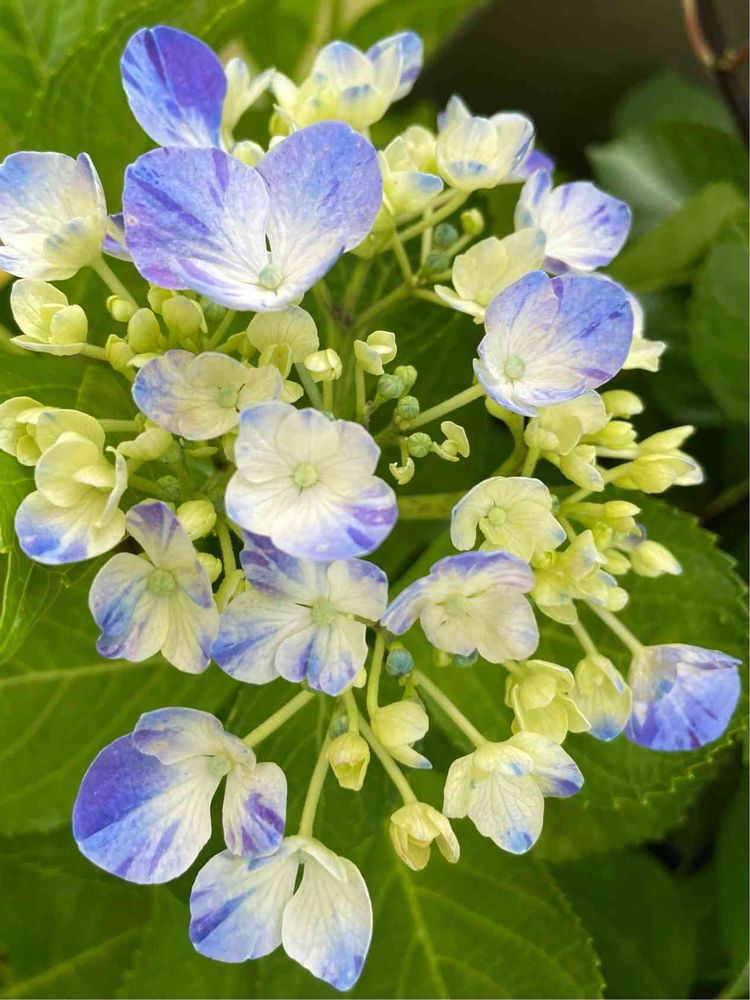 紫陽花・舞姫(水色の恋)💠柄がイイ感じに色づいてきたので楽しみ💙去年は、装飾花も柄も歪でひどかったぁ、、、綺麗にそのまま咲き進んでぇー(。>人<。)💦