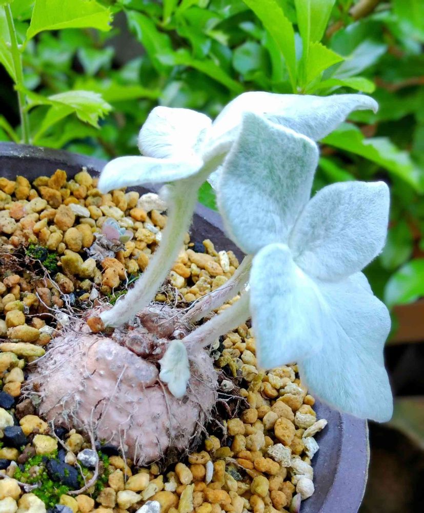 お芋さんから葉っぱ💚葉っぱはビロードのようにモフモフ^_^