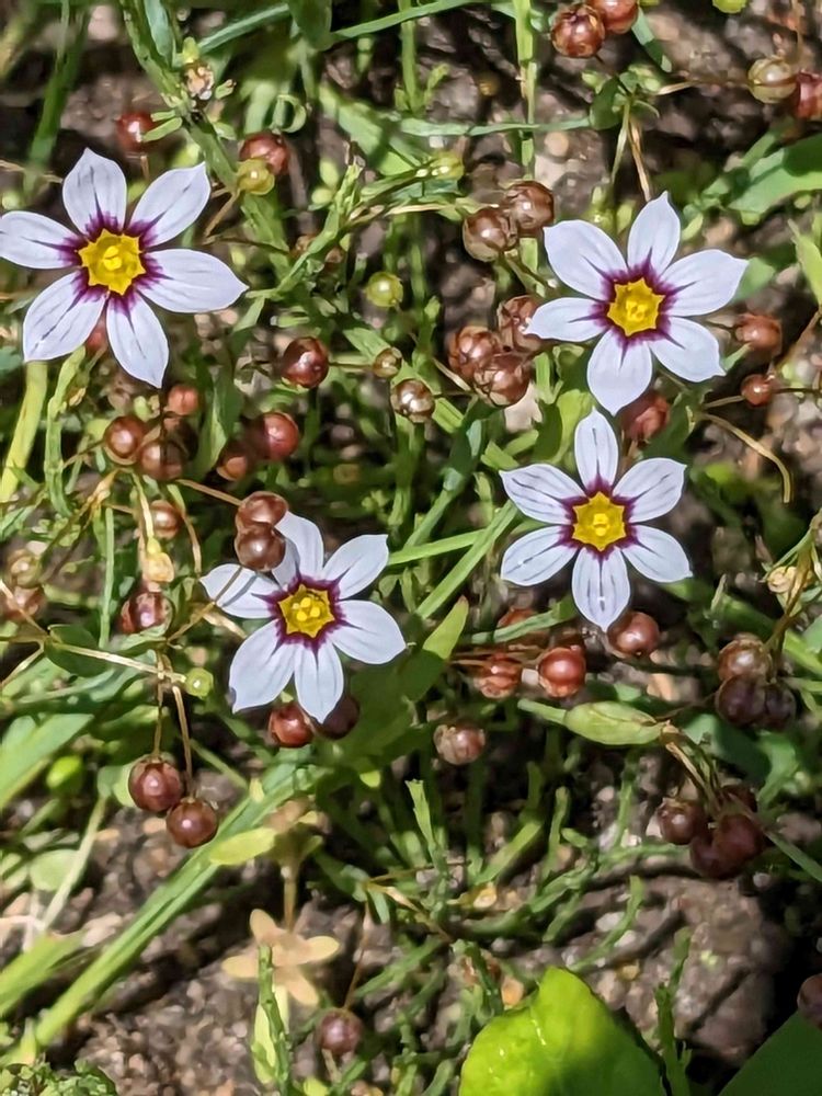 道すがら見た❗道路脇の空き地の中でイキイキと咲いていた綺麗な花🤎ニワゼキショウ🤎