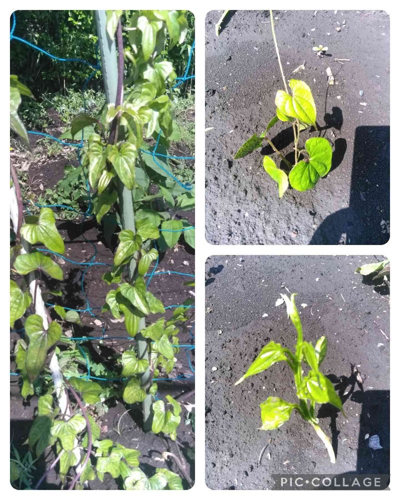 右下⬇に似てますが 粘りが強いつくね芋と言う品種を植えてます。