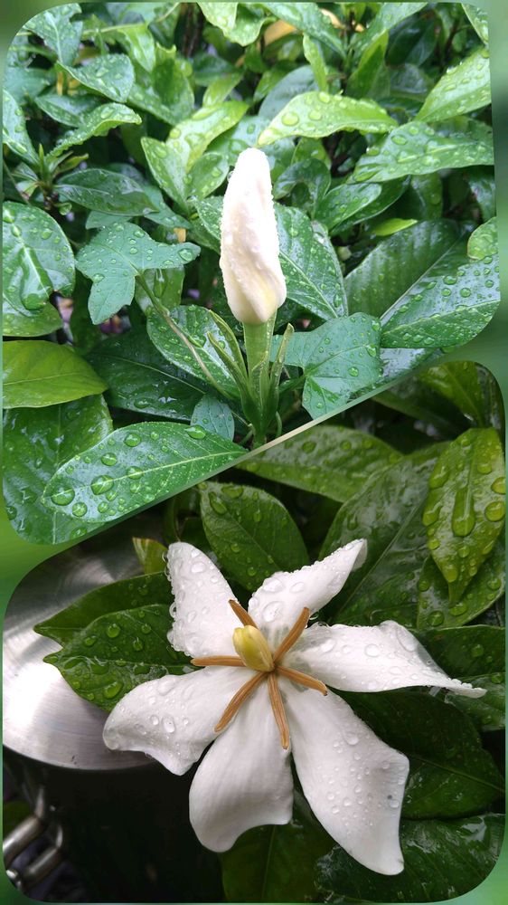 蕾の周りの葉っぱが、雨で潤い、とてもきれいな緑を見せてくれていました。