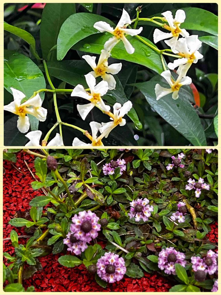 上は先日咲いていたテイカカズラの小さな可愛い花✿¨̮下は病院🏥付添いの時に見つけたシロツメクサのお隣に居た✿¨̮花❣️