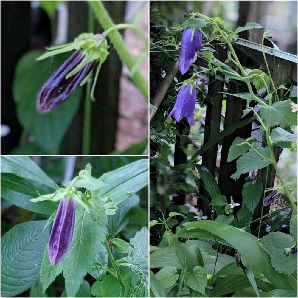 ドッグラン周りの園芸種の青花蛍袋のお花と蕾(右 左上)
