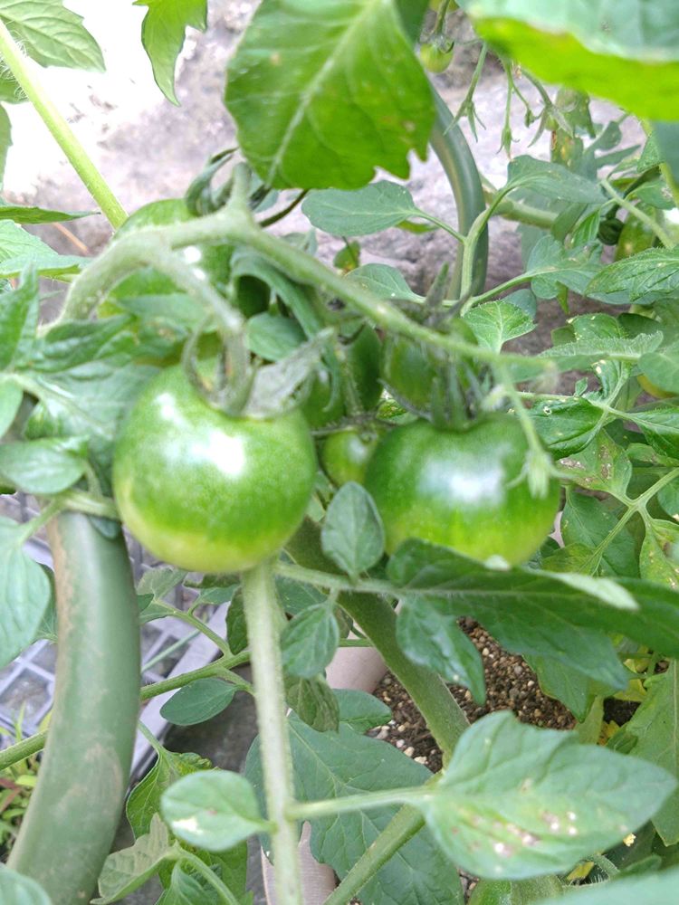 今日みたら🎵中玉と緑のミニの花さいてたわ❤️🍅