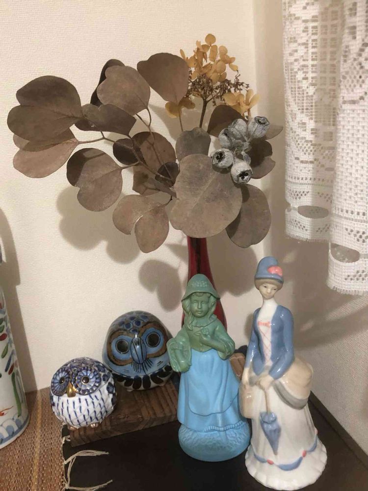 枝にはすでにアンティークっぽいセピア色➕グレー🩶の葉っぱだったように覚えます。