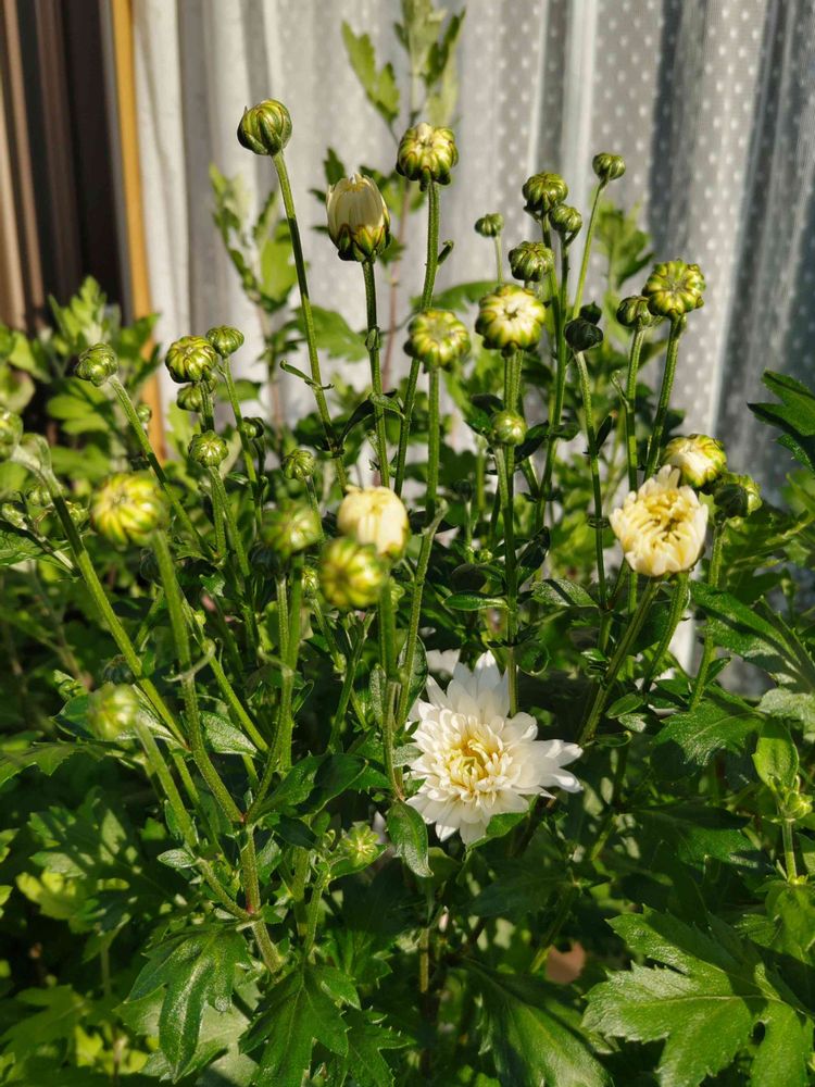 この時期にお花さんは大事。秋に咲く菊は持っていたので夏に咲く菊を探していたら昨年、見切り品でみつけてお世話したら大っきく育ってくれました😀一斉に咲くのは悩むけど仏前に飾るのは助かるよね🤩菊は強いよ🫡