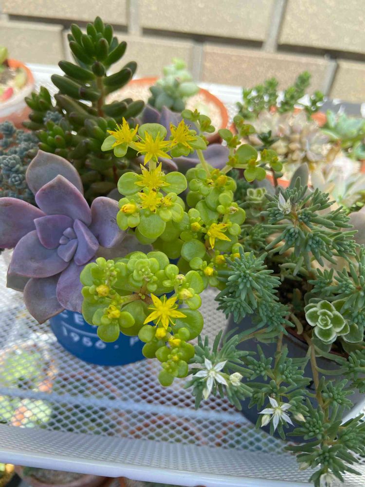 黄色の花の方はマルバマンネングサだと思われます🫡