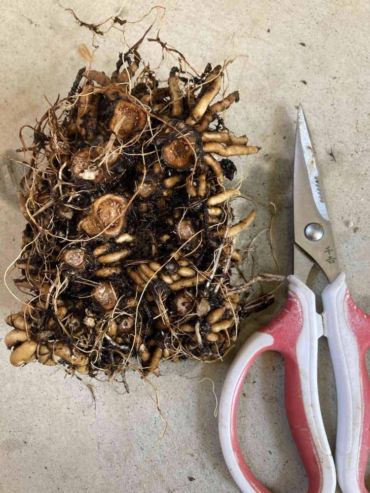 株分しないと塊根がだめになりそうなほど大きな株でしたので掘り起こしました。