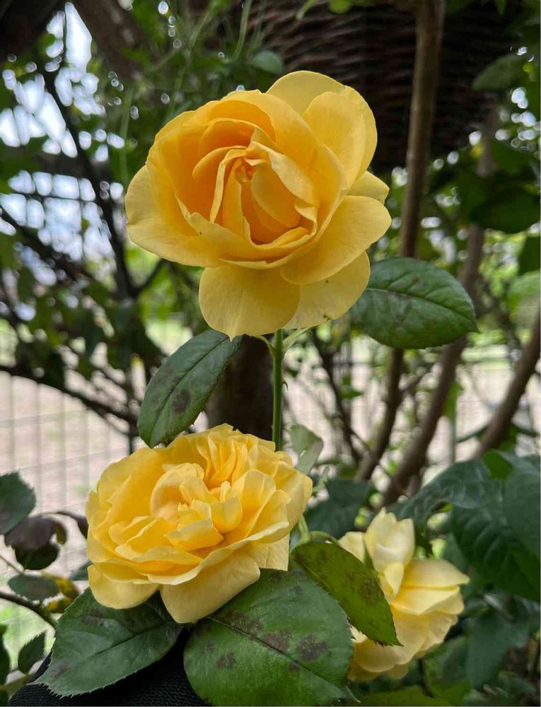 ハープシーコード🌹遅咲きで可愛く咲いてくれました✨✨葉っぱの黒星が気になりますが、お花は優しいイエローで毎年綺麗に咲いてくれます♪