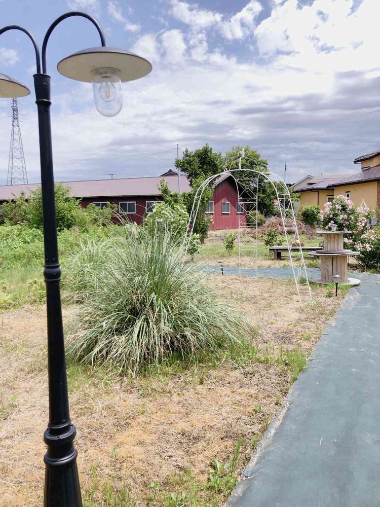 先程のガゼボ風アーチを大きい方のお庭に移動しました(*^^*)