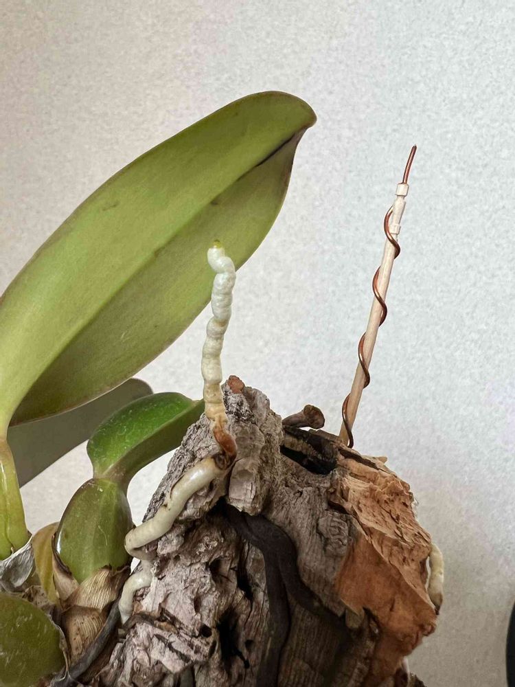 他のカトレアの空中に伸びてる根は、こんなに細かい螺旋はなく、一見真っ直ぐ伸びてるように見えるものばかりです。